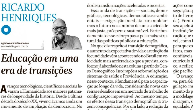 Ricardo Henriques debate em coluna de O Globo como as diferentes transições exigem ação imediata.